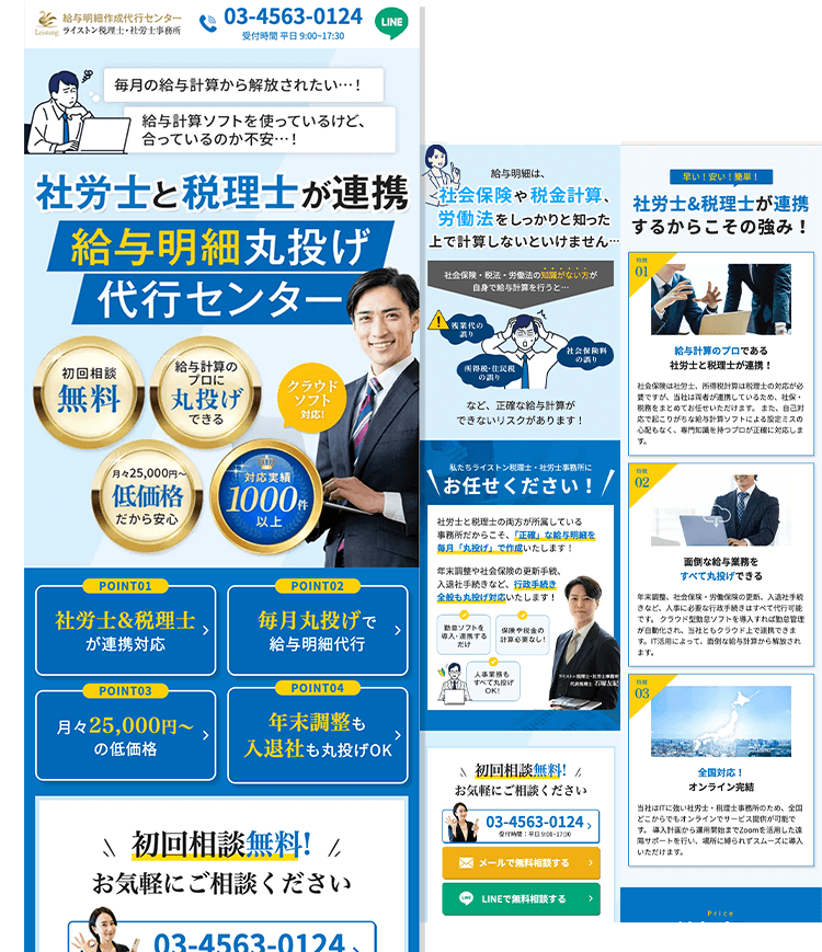 給与明細作成代行サービスの集客用LP