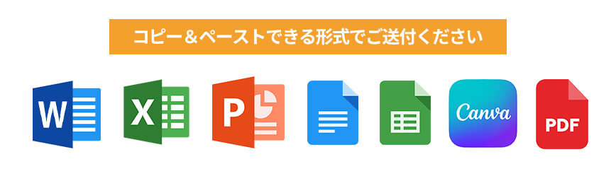 作成ツールは、WordやExcel、PowerPoint、Googleドキュメント、Canvaなどいづれの形式でも問題ありません。