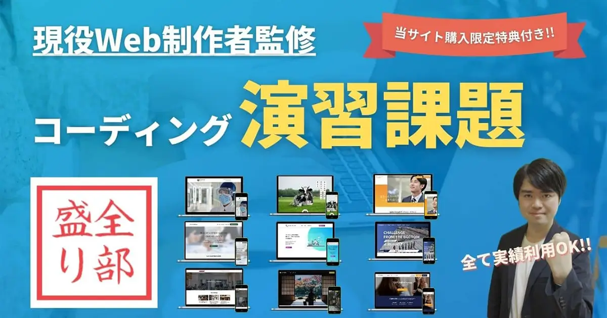 コーディング演習課題は、デザインカンプからのコーディング練習ができる、本格的な実践演習課題です。