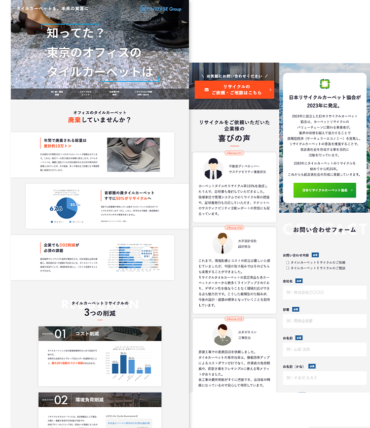 タイルカーペットのリサイクルを認知、申し込みしてもらうためのページを作りたい
